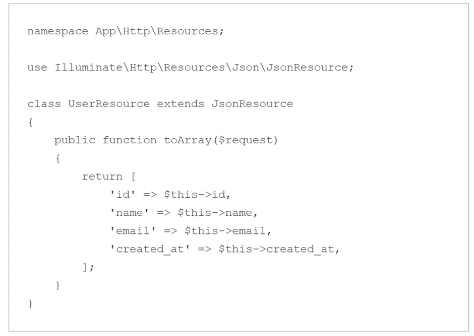 | API Resource Classes | It simplifies the transformation of models to JSON responses | Offers clean and consistent responses |