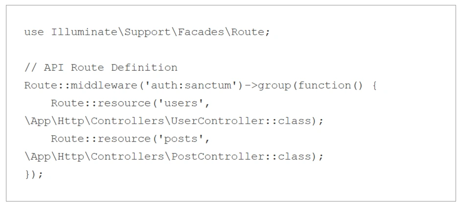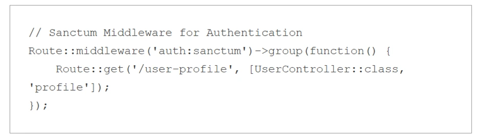 Check the example below that explains the code for how you can protect routes using Sanctum Middleware.