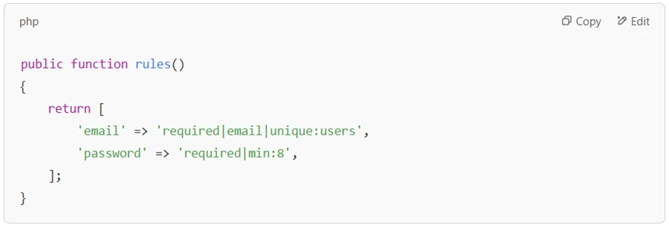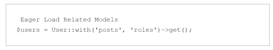 These days, users expect lightning-fast response from the APIs. That’s why you must do performance optimization. Laravel provides various methods to enhance API performance, such as database optimization, caching, and query optimization. Eager Loading can help you reduce the number of database queries. If you want to minimize response time, implement Query Coaching and Route Caching. Laravel Queues can help you handle background tasks asynchronously. Check out this example of Eager Loading, which helps improve performance.